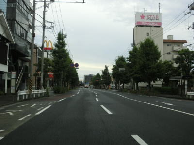 | 宮前町交差点から約800m東の労働会館前交差点で左端車線が左折専用車線になる。交差点の直後の東向き車線は2本しかないがすぐに3車線に増える。西向き車線は2本のみの上下5車線で中央分離帯はない。この5車線道路で真東に向かって走る。 | ||