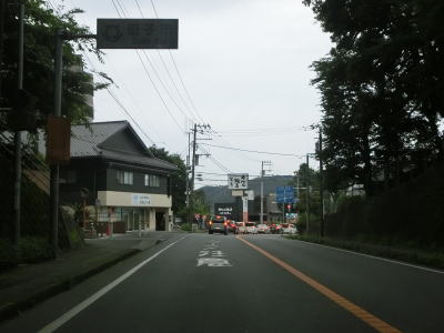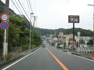 | 葉山大道交差点からは上り勾配となり、大きく左にカーブしていると葉山町役場入口交差点を通過する。その後は下り勾配となり直線的な2車線道路を走る。センターライン付きの2車線道路なので決して劣悪な道路状況ではないが、沿線に家屋が建ち並んでいるせいか若干狭苦しさを感じる。 | ||