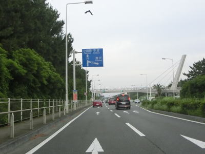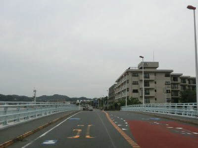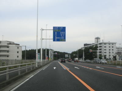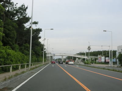 | 高浜台交差点からも片側2車線道路が続いている。左側は相模湾が広がっているのだが、幅の広い防風林の幅せいで海は全く見えない。平塚駅の南で神奈川r608平塚駅南入口交差点を通過し、さらに走ると神奈川r61八間通り入口交差点を通過する。r608は停車場線のため線路の北には行けないが、r61はアンダーパスで行く事ができる。神奈川r62花水川橋交差点の直後に花水川橋を渡る。 | ||