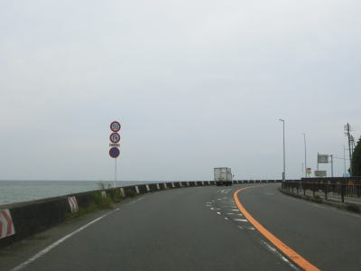 | 藤沢市に入った直後にR467片瀬東浜交差点を通過し、以降は片側2車線道路になる。案内標識に江の島が表記されているが、片瀬東浜交差点ではなく300m西の江の島入口交差点から入る事になる。江の島入口交差点は神奈川r305との交差点だが、r305に指定されているのは歩行者用の江の島弁天橋であり、車道の江の島大橋は指定されていないようである。江の島入口交差点を過ぎると片瀬橋で境川を渡る。 | ||