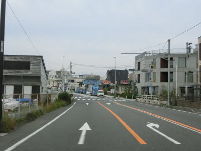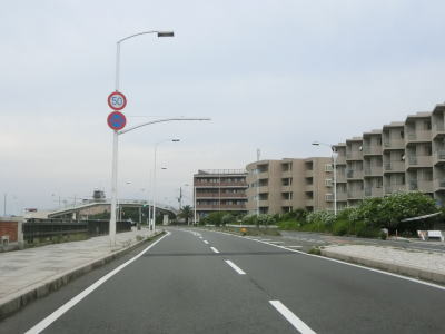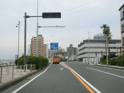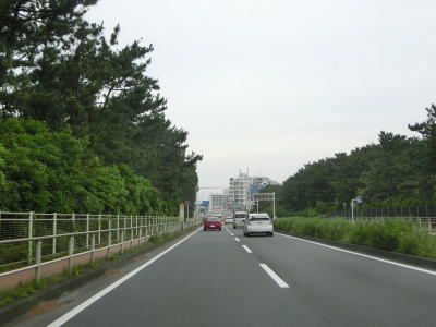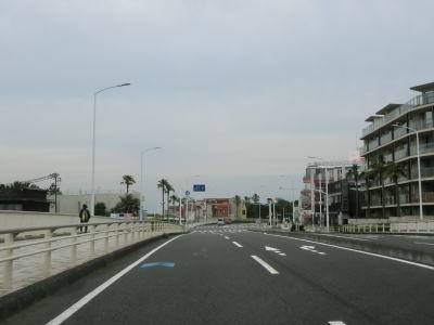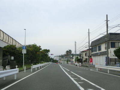| 片瀬橋からも片側2車線道路が続いている。右側には集合住宅が多く、左の海側には新江ノ島水族館や湘南海岸公園、鵠沼海浜公園などで住宅は建っていない。鵠沼海浜公園を過ぎてからは鵠沼海岸や辻堂海岸という海水浴場に沿っている。 | ||