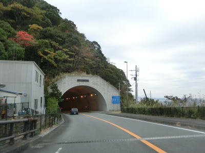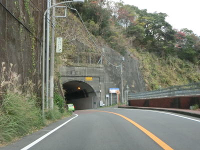 | 急カーブが連続する2車線道路を走っていると新宇佐美トンネルと御石ヶ沢トンネルを相次いでくぐる。両トンネルとも海寄りに旧道があるが、車両での通り抜けはできなくなっている。御石ヶ沢トンネルを出てからはまた急カーブが連続した状態となる。標高は70m程度と海に近い割に高く眺望も良好である。 | ||