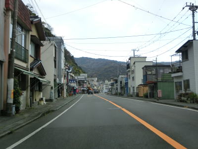 | 87.干物の販売店が軒を並べる | 88.副道のような道路がある | 89.JR伊東線と隣接並走 |