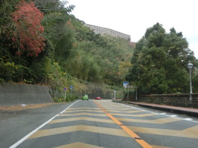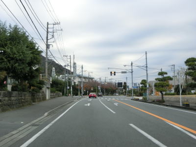 | R135伊東バイパスとの殿山交差点からも対面2車線道路が続いている。沿線には建物が密集しておりバイパスに比べると走りにくいのは間違いない。緩やかな右カーブ付近からはやや急な勾配を下って行く。市道との赤坂交差点を通過してから右に大きくカーブした後に左カーブを曲がる。 | ||