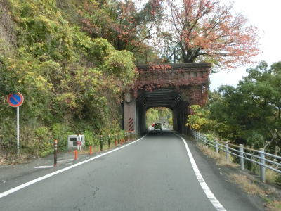 | 上下線が分離している距離は200mに満たず元の対面2車線道路に戻る。やや急な右カーブを曲がった後に再び上下線が分離し、今度も北向き車線のみ曽我浦片隧道五号をくぐっており、南向き車線は曽我浦大橋を通っている。一号から三号までの片隧道も存在したのだろうが、現在は道路としては使用されてないようである(現存しているかも不明)。 | ||