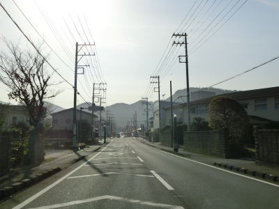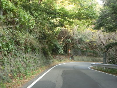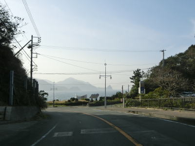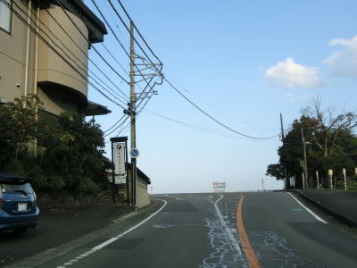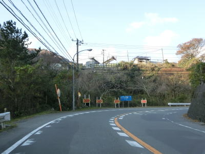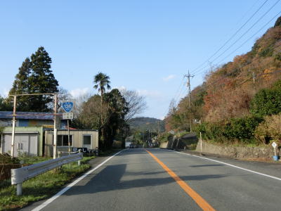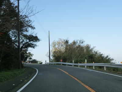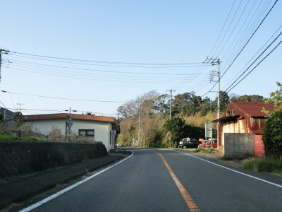| 片側交互通行規制が敷かれていた舗装工事の現場を通り過ぎると左にカーブして再び海岸線沿いを走るが、少し進むと左にカーブして内陸に入り、大久保集落を通り抜ける。大久保集落を通り過ぎてからも海岸線沿いとはならず、カーブとアップダウンを繰り返す2車線道路を走る。 | ||