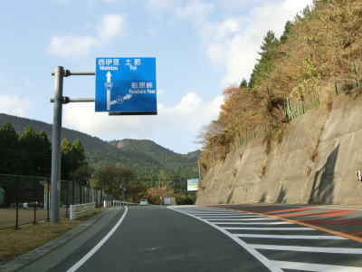 | 静岡r411交差点を過ぎてからも上り勾配が続いており、程なくして船原トンネルをくぐる。かつては天城湯ヶ島町と土肥町の境だったが、平成の大合併により両町とも伊豆市になったため市境のトンネルではなくなった。船原トンネルからは下り勾配となり、トンネルを出ると船原大橋を渡る。名称に大橋と付いているものの全長は100m程度の短い橋である。 | ||