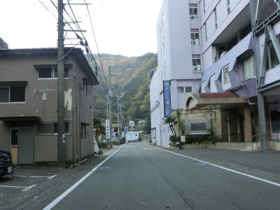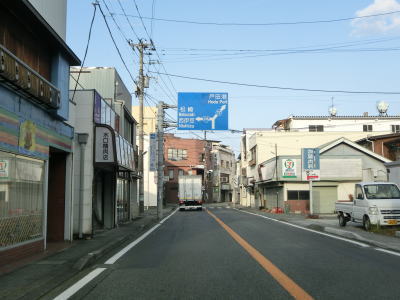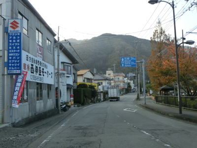 | 水神橋で山川の右岸に移ってからは沿線の家屋がさらに増えて旧土肥町の中心部に近付いている事が分かる。旧土肥町役場(現在の伊豆市役所土肥支所)の前を通過した後に静岡r17土肥中浜交差点に至り、左折して松崎・西伊豆方面に進む。 | ||