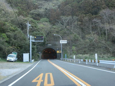 | 賀茂トンネルを出てすぐに次の小洞トンネルをくぐる。大きく右にカーブした後に左カーブを曲がるが、前方には宇久須港と駿河湾を望む事ができる。左カーブの後に勾配を上って松ヶ坂トンネルをくぐる。 | ||