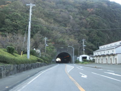 | 恋人岬を通過してからも緩やかなアップダウンの2車線道路が続いており、左カーブを曲がって少し走ると土肥第2トンネルと土肥第1トンネル、賀茂トンネルを相次いで通過する。賀茂トンネルは市町境となっており西伊豆町に入る。 | ||