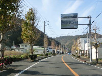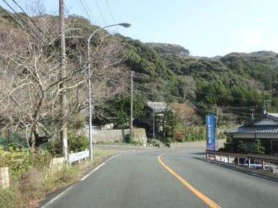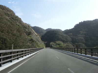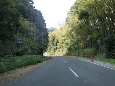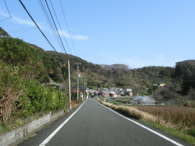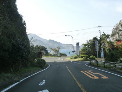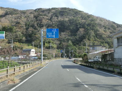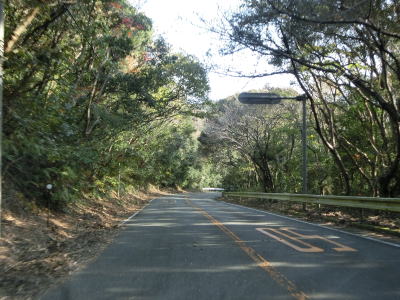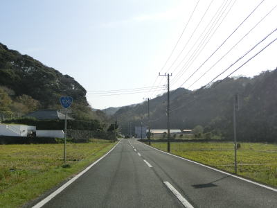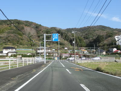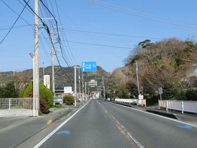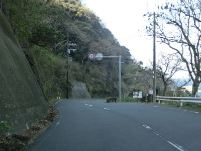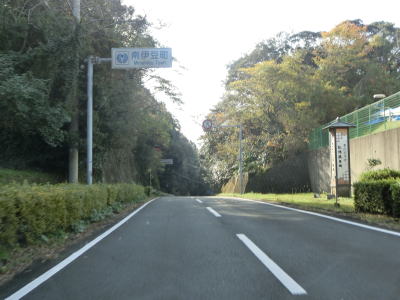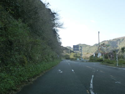 | 石部の棚田の入口に当たる町道との交差点を通過してしばらく走っていると町境を通過して南伊豆町に入る。南伊豆町に入ってからは緩やかな下り勾配となるが、それ以外の道路状況の変化は見られない。 | ||