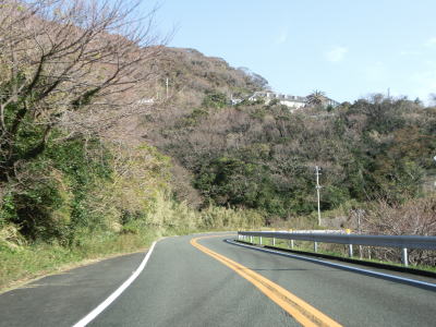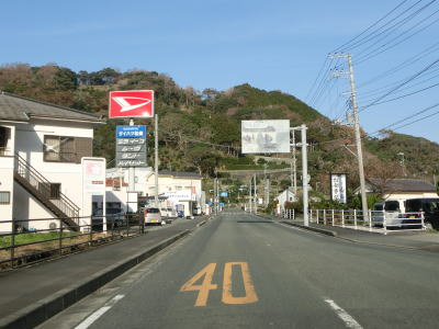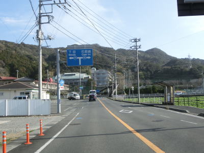 | 名もなき峠を越えると下田市に入り、緩やかな勾配を下って行く。市道との田牛交差点を左の急カーブで通過して以降も2車線道路が続いているが、車線幅が若干狭くなってしまう。緩やかなアップダウンを繰り返しながら急カーブもある2車線道路を走る。場所柄、周辺には旅館やらペンションといったものが多い。 | ||