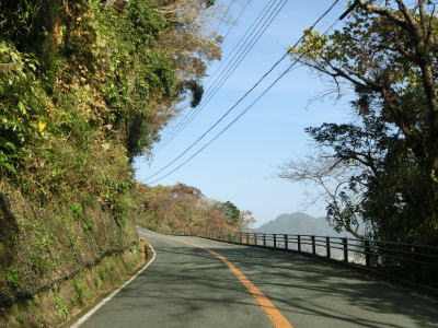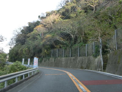 | 太田川の右岸の斜面を走っていると2ヶ所目の連続ヘアピンカーブを通過すると標高は200m程度となる。さらに上り勾配の2車線道路を走る。それほど急なカーブはないが車線幅がやや狭くセンターラインにキャッツアイが埋め込まれている箇所がある。 | ||