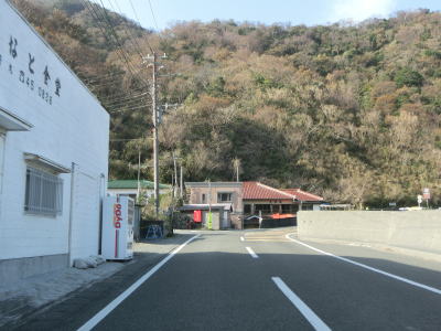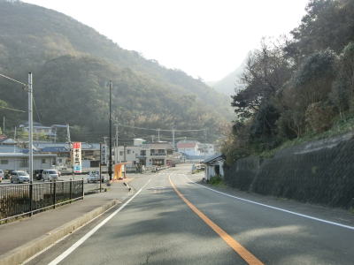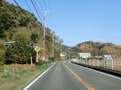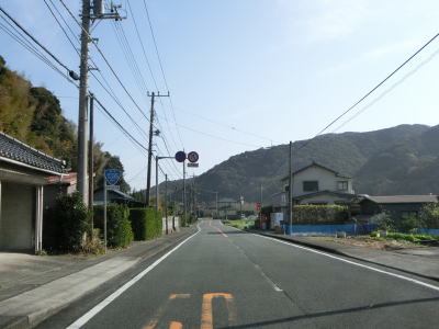 | 岩地集落の南でセンターラインがなくなり道幅も1.5車線程度にまで狭くなる。その後は2.0車線幅にまで広くなるが、カーブが多いため走りにくさを感じる。センターラインが復活して2車線道路を下ると石部集落を通過する。 | ||