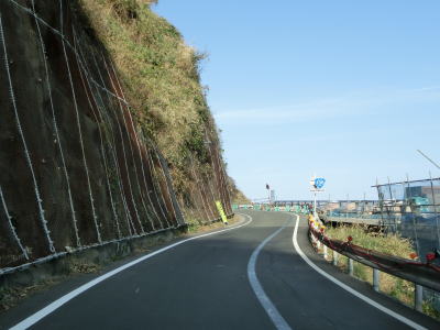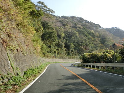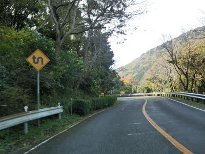 | 左にカーブしてから右カーブを曲がり、その先で静岡r347交差点を通過する。r347は路線名を波勝崎線と言い、波勝崎とR136を結ぶ県道である。r347交差点以降もも緩やかな下り勾配の2車線道路が続いており、カーブが連続しているものの緩やかなものが多いので走りやすい道路状況と言える。路側帯に落ち葉が堆積しているので若干荒れた雰囲気が感じられる。 | ||