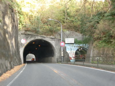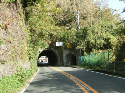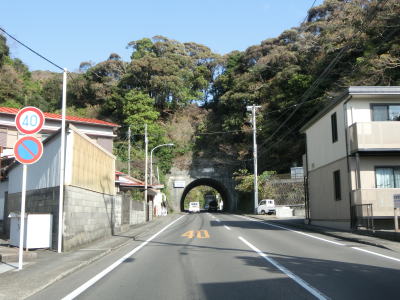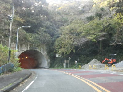 | 市道との多々戸浜入口交差点を通過して勾配を上っていると下田第2トンネルをくぐり、鍋田入口交差点の先で下田第1トンネルをくぐる。どちらのトンネルも3.4mの制限高が設定されており、自転車歩行者用のトンネルが隣接して掘られている。第1トンネルの歩行者用トンネルには魚等の海に関連する絵が描かれている(地元の小学校生によるものか)。 | ||