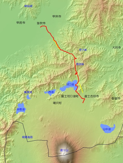 | 主な経由地 | 山梨県富士吉田市〜富士河口湖町〜笛吹市 |