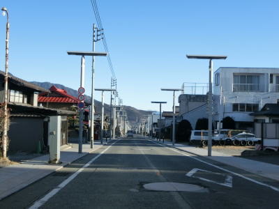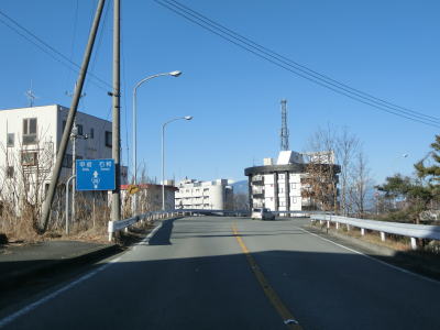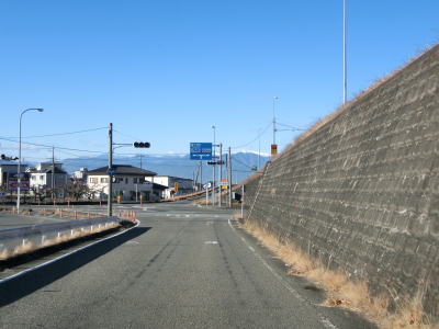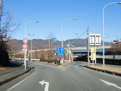 | 市道との八幡橋交差点付近で緩やかな左カーブを曲がって金川から少し離れた後にE20中央道の大原橋をくぐってから一宮御坂ICを通過する。ランプの一宮第二IC橋の直後にも橋梁の下を通るが、これは山梨r211の竹原田橋である。 | ||