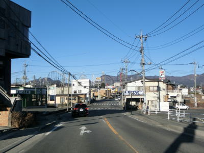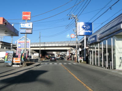 | 金鳥居交差点からも市街地を通るやや狭苦しい対面2車線道路が続いている。富士急行の大月線と河口湖線の富士山駅の北を通過する。開業当初は富士吉田駅という名称だったが、2011年7月1日に現在の富士山駅に改称されている。緩やかな勾配を上って富士急行大月線を越えてからは河口湖線の北側を並走するようにして西に向かう。前方に観覧車やジェットコースターが見えるがこれは富士急ハイランドのものである。 | ||