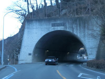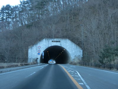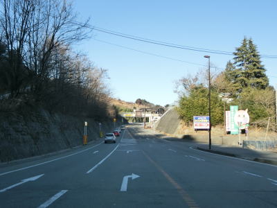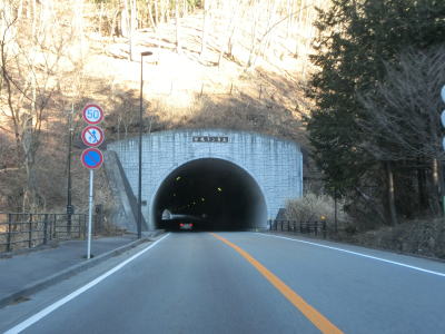 | バイパスとの交差点からも対面2車線道路が続いている。河口湖から離れるため沿線は普通の家屋が多く観光地というイメージは薄れていく。7%とやや急な勾配を上って谷坂トンネルをくぐり、次いで山宮トンネルをくぐる。追坂トンネルを含めてほぼ同時期に整備されたトンネルである。 | ||
