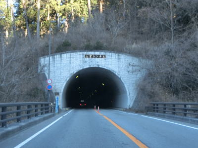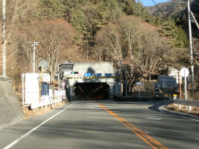 | 富士見橋の直後から登坂車線が設置されており、大きく左にカーブした後に対面2車線道路に戻り、その直後に新御坂隧道をくぐって笛吹市に入る。トンネルの延長は2778mで当初は有料道路であったが、1994年に無料開放されている。南側坑口付近に山梨r708が交差しているが、トンネルの無料開放以前は国道に指定されていた。なお、新たな御坂トンネルの建設が計画されており、延長は4600m程で供用されれば現在の急カーブ部分も旧道になってしまう。 | ||