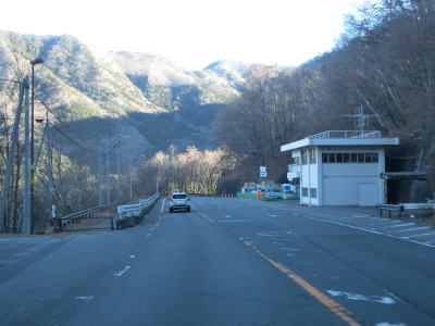 | 新御坂隧道を出て右カーブを曲がって少し走ると料金所の跡らしき場所を通る。駐車場と公衆トイレが設置されており簡易な東屋もある。料金所跡を過ぎて右カーブを曲がった後に左ヘアピンカーブを通過し、その先で山梨r708交差点を通過する。交差点の手前には閉鎖用ゲートが設置されている。 | ||