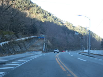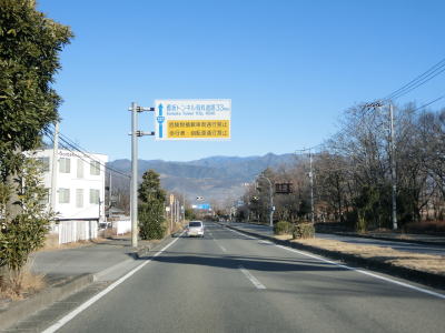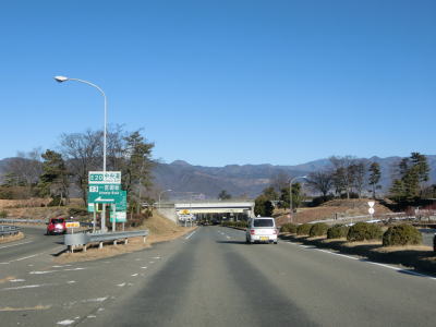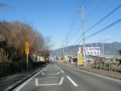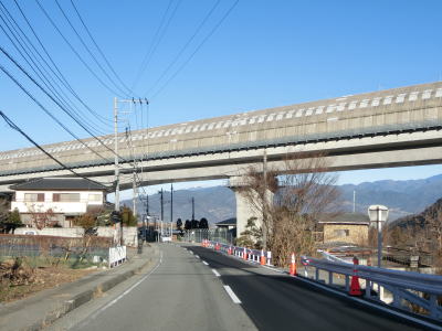 | 現道と言っても対面2車線道路と決して劣悪な道路状況ではないが、登坂車線は設置されておらず幹線国道としては若干役不足と言えなくもない。引き続き緩やかな勾配を下っているとリニアモーターカーの実験線の高架の下を通る。沿線には果実農園が多く山梨らしい風景が続く。 | ||