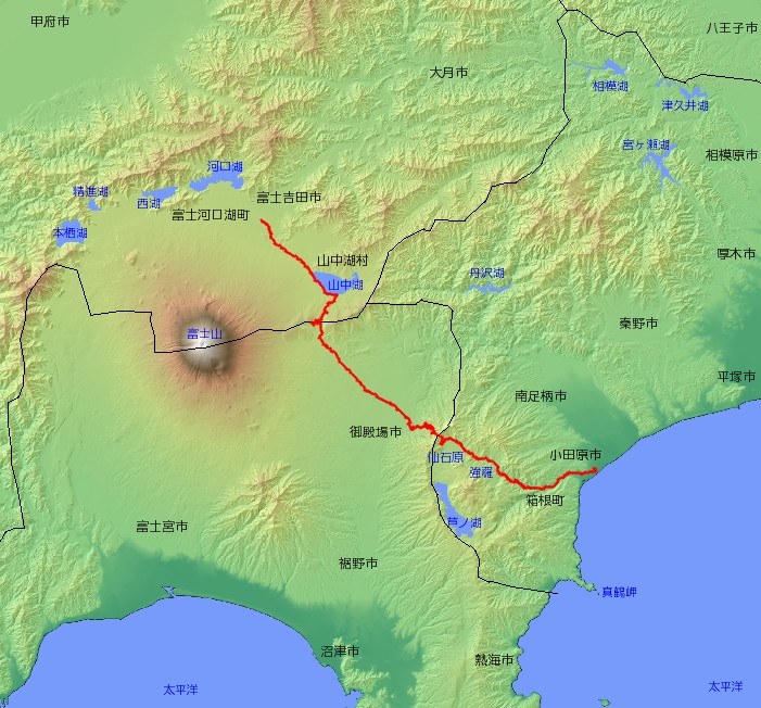 | 主な経由地 | 山梨県富士吉田市〜山中湖村〜 〜静岡県御殿場市〜 〜神奈川県箱根町〜小田原市 |
