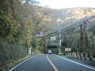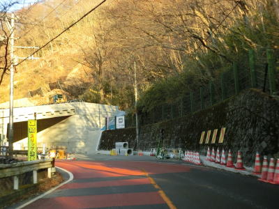 | 碓氷洞門からはカーブの多い2車線道路を走り、早川に注ぐ沢に架けられたいくつかの橋を渡る。2019年の台風19号のよって法面が崩落した箇所は洞門が建設中で迂回路の仮設橋を通らなければならなかった。 | ||