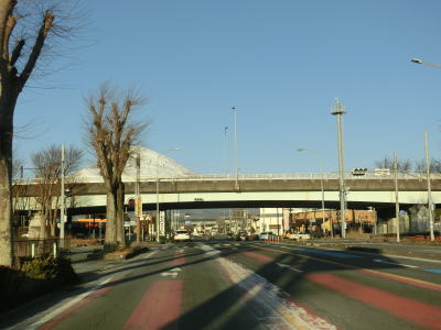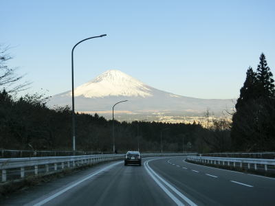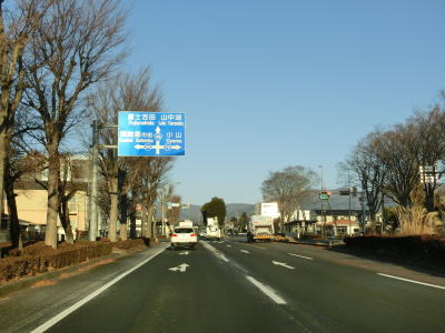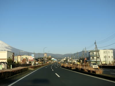 | 湖水前交差点からは片側2車線道路となり、程なくして石橋交差点を通過する。この交差点はE1東名の御殿場ICの東京方面からの出口である。E1東名の東山ランプ橋と本線の東山橋の下を通った先にも御殿場ICがあるが、こちらは東京方面への入口である。旧道である静岡r401にも御殿場ICが接続しており、名古屋方面の出入りだけでなく東京方面の出入りも可能である。 片側2車線道路を北西の方角に向かっており、左前方に富士山が見える。JR御殿場線の上を通っている富士見高架橋は、その名称が示す通り富士山がよく見える。富士見という名称は富士山(各地の郷土富士を含む)が見える場所に使われるケースが多いが、この富士見高架橋はその中でも屈指の“富士見”地点と言える。 |
