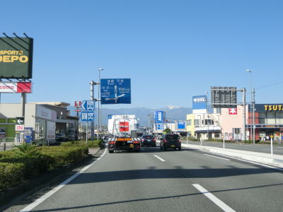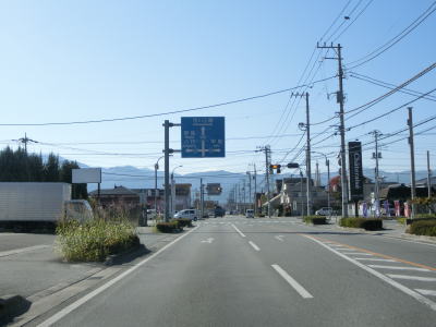 | 向町2交差点からはR20との重複区間を走る。二桁幹線国道と重複しているだけあって片側2車線と整備されており、交通量も非常に多い。甲府市の中心部からは離れた位置だが沿線には多くの商業施設が建っている。約400m走って上阿原交差点を左折するとR20との短い重複区間が終わる。 | ||