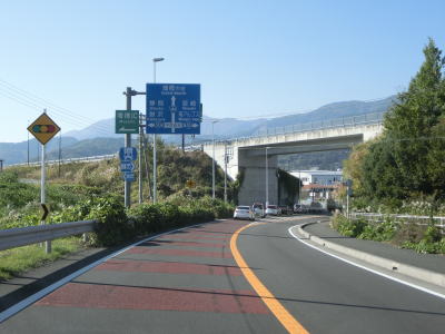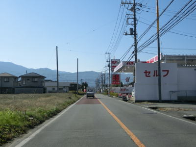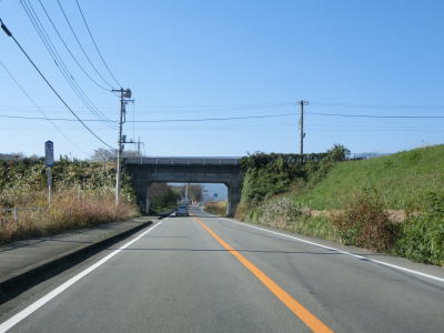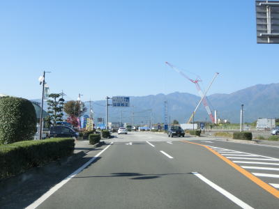 | 笛吹川の堤防に近付いた所で市川三郷町に入る。堤防の内側を走っているとJR身延線の下をくぐる。その後緩やかな勾配を上って堤防と同じくらいの高さになり、山梨r3桃林橋南詰交差点を通過する。 | ||