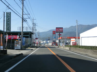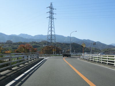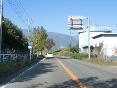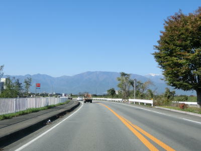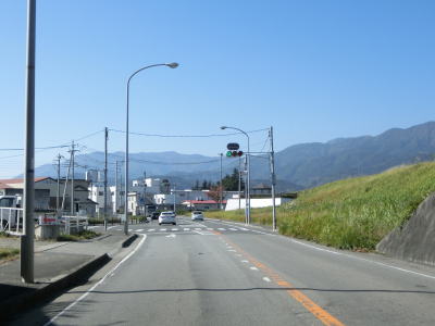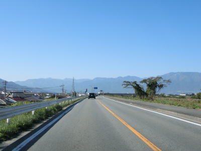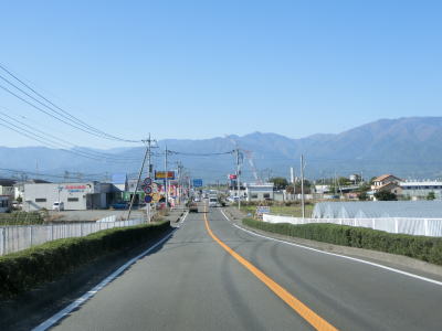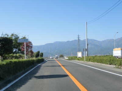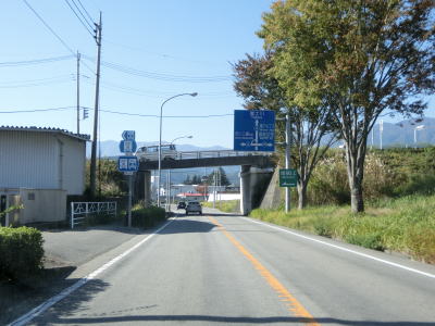 | 笛吹川沿いを走っていると緩やかな勾配を下ってE20中央道の笛吹川橋の下を通り、その後に川から少し離れる。引き続き勾配のない2車線道路を走っているとR358笛南中北1交差点を通過する。左折すればE20中央道の甲府南IC、右折すれば甲府市の市街地に行く事ができる。 | ||