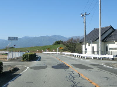 | 白井河原橋を渡り切った所で山梨r34白井河原橋南詰交差点に突き当たり、右折して増穂・市川大門方面に進む。笛吹川の左岸の堤防の上を走っており、見通しが良いため非常に走りやすい。堤防の上で山梨r113中道橋南交差点を通過する。 | ||