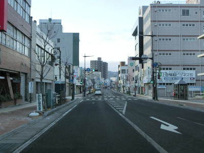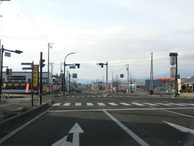 | 中央北交差点から約1.1km、上田駅の手前の長野r77中央1交差点を左折する。直進の道路は現在はr77だが、以前はR143であった。中央1交差点からは短距離ながら上り勾配となり、その後はほぼ平坦な状態になる。駅に近くショッピングモールの前を通っているため昼間は交通量が多そうな雰囲気である。 | ||