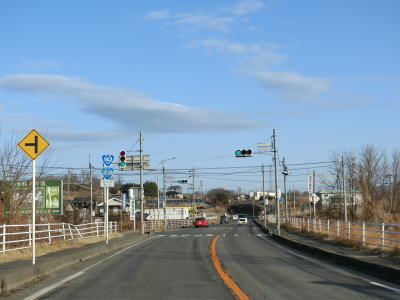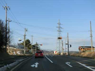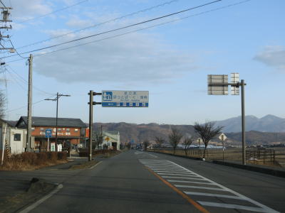 | 佐久南ICを過ぎてからも片側2車線道路が続くが、約1.2km先の岸野小学校入口交差点の手前で左側車線がなくなり、以西は対面2車線道路になる。前回走行時(2013年12月22日)は佐久南ICを過ぎた辺りだったのが1km程延伸されていた。車線減少後は緩やかな右カーブを曲がる。 | ||