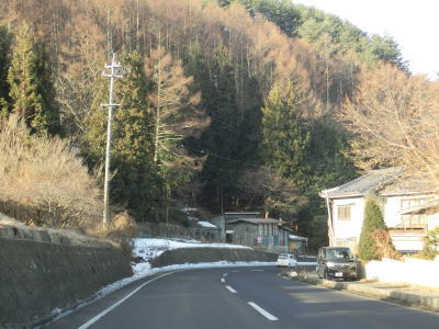 | 集落に差し掛かると勾配もカーブも緩やかになる。三郎山の山裾を走っているとR152との長久保交差点に至る。T字路を左折なのだが、交差している角度から左方向に直進という感じである。信号機の切り替わりタイミングも通常とは異なる。 | ||