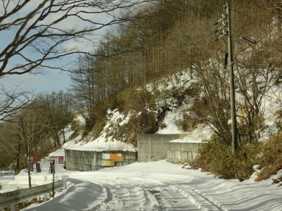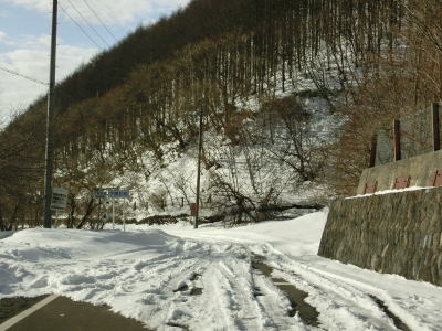 | 129.下諏訪町に入る | 130.下諏訪町側は除雪されていなかった | 131.採石場の出入口 |