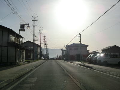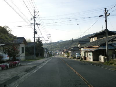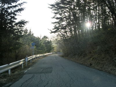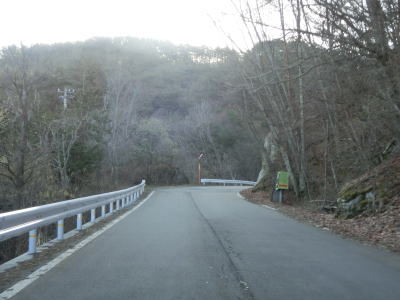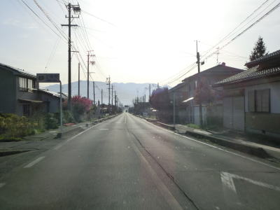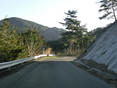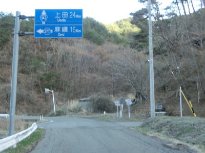 | 等高線に沿った緩やかな勾配の狭路を走っていると左の急カーブの先で長野r277との交差点を通過する。左折すれば筑北村の中心部に行く事ができ、R403を経て麻績村にも行ける。また、r277の反対側に村道が交差しており、通り抜けはできないものの村境の手前まで行く事ができるようである。 | ||