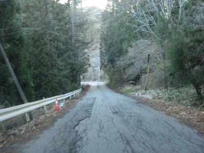 | 64.筑北村に入る | 65.筑北村側も狭路 | 66.舗装状況が悪い |