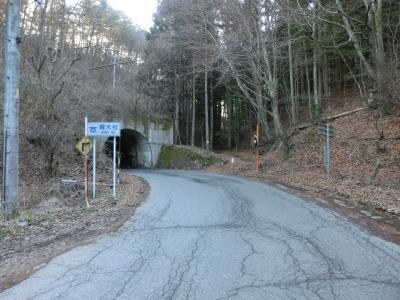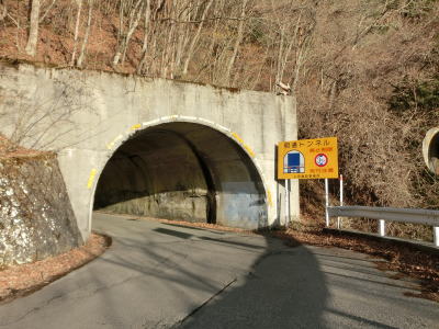 | 会吉トンネルから約3.9kmで明通トンネルに至る。3.5mの制限高が設定されている狭いトンネルだが、会吉トンネルとは異なり交互通行規制は敷かれていない。村境のトンネルであり、筑北村から青木村に入る。筑北村側は制限高の標識もバーも設置されていないが、青木村側には坑口の脇に大きな看板が設置されている。 | ||