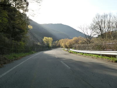 | 82.集落の直前まで急勾配 | 83.センターラインが現れる | 84.弘法川の谷筋に集落がある |