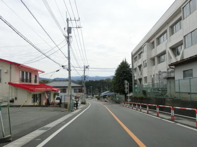 | 77.冠雪しているのは武尊山か | 78.川田小学校の前を通過 | 79.急勾配を下る |