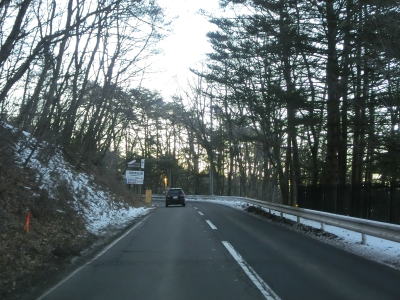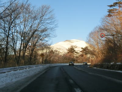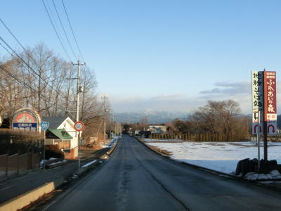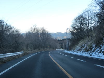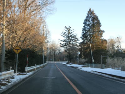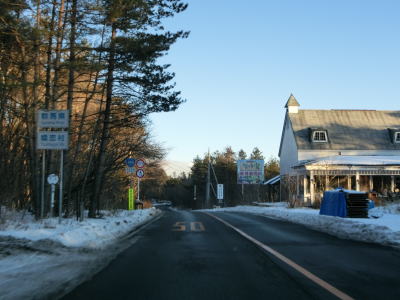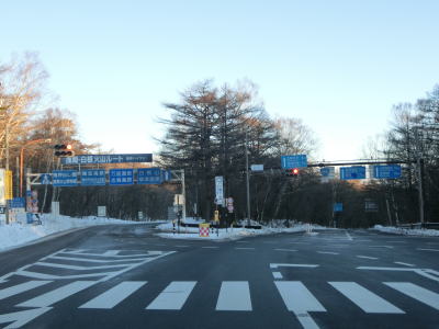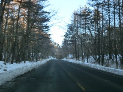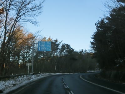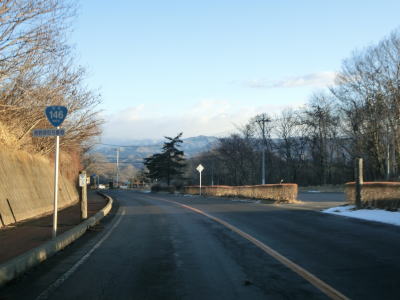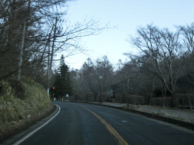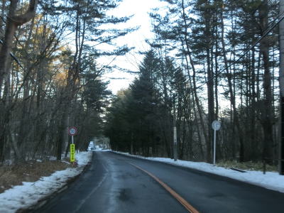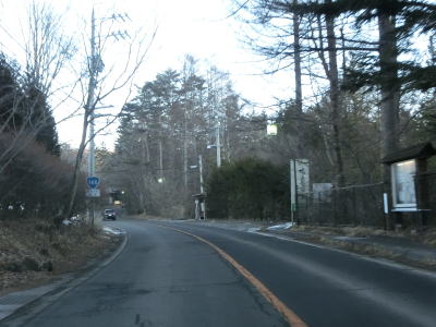 | 北軽井沢交差点からもカーブの少ない2車線道路が続いている。T字路の警戒標識が立っているが、実際の形状は左カーブの右方向に町道が接続しているものであり、道なりに左にカーブするだけでよい。その後は下り勾配になるが、同時に視界が開けるようになり遠方の山々まで見渡す事ができる。 | ||