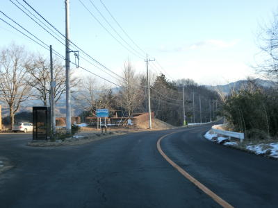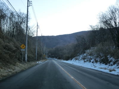| 2つの駐車帯を通り過ぎて以降は勾配が若干きつくなりカーブも多くなるが、走りにくさを感じる程ではない。ヘアピンカーブが連続している区間は上りとなる南向き車線には約1.5kmの登坂車線が設置されている。登坂車線が終わる直前(南向き車線から見れば始まった直後)には町道との交差点がある。交差点以降も急カーブが連続している。センターラインのない狭路に見えるが、センターラインが消えてしまっているだけである。 | ||