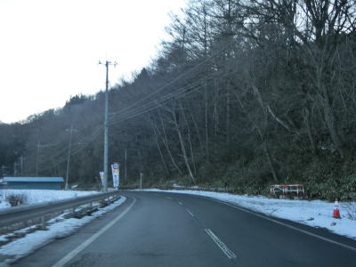 | ヘアピンカーブを含む急カーブが連続している状態で古森集落を通過する。直角に近い左カーブを曲がった後に右のヘアピンカーブを曲がる。ここにもセンターラインが消えている場所が存在している。 | ||