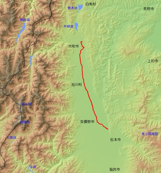 | 主な経由地 | 長野県大町市〜安曇野市〜松本市 |