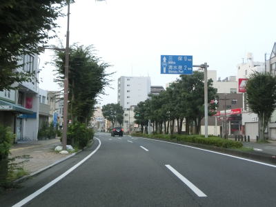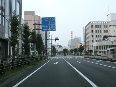 | 静岡市役所の清水庁舎の東で静岡r407市役所清水庁舎前交差点を通過する。さらに南下すると静岡r75・r197万世町交差点に至り、左折して三保・清水港方面に進む。万世町交差点からは車線は減らないものの中央分離帯がなくなる。 | ||