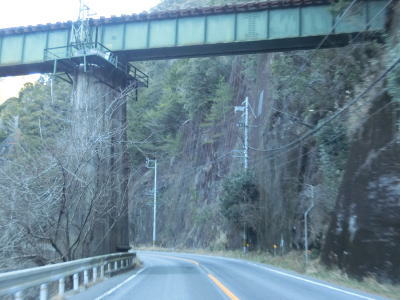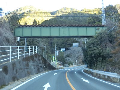 | 新大橋と川合橋を相次いで渡るが、前者は宇連川に、後者は支流の亀淵川に架けられており、以降は亀淵川沿いを走る。右カーブを曲がっているとJR飯田線の跨道橋をくぐり、その先で建設中のR474/E69三遠南信道の7号橋(仮称)をくぐる。 | ||