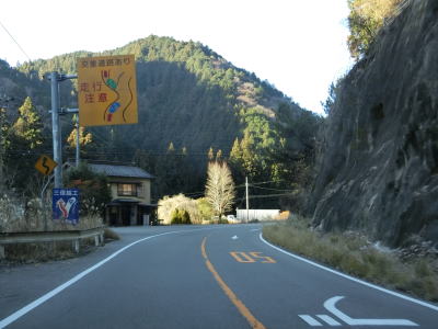 | 市ノ瀬川に沿った下り勾配の2車線道路をひたすら走る。愛知県側とは異なりカーブはほとんどないため見通しが良く走りやすい。若干狭苦しい箇所もあったが、拡幅されている。栃洞集落に差し掛かると平坦になると同時に視界が開ける。 | ||